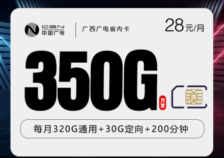 广西广电省内专属卡深度解析:28元月租享350G流量+200分钟通话,另有其他地区专属套餐